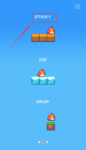 2、选择红框STICKY模式,体验黏着平台玩法。