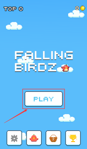 4、击红框PLAY按钮,开始下坠小鸟游戏挑战。