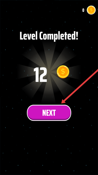2、Level1完成后,点击紫色NEXT按钮,获取12金币奖励,进入Level2,开启新空间挑战。