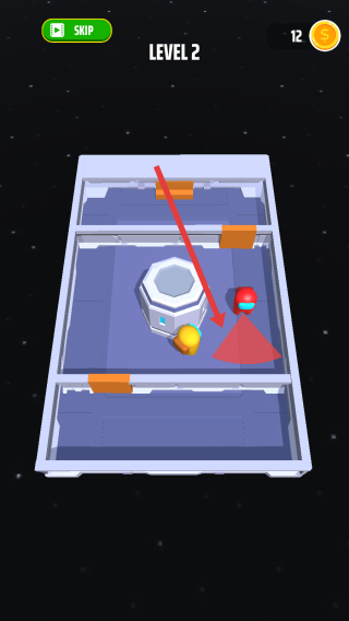 3、Level2中,滑动屏幕操控黄色角色移动,避开红色敌人的侦查区域,灵活走位,推进关卡进程。