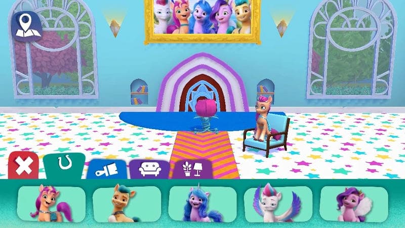 2、在冒险过程中,漫步于不同的特色区域,与其他小马角色交流互动,接受并完成它们托付的趣味任务,同时留意收集散落在场景中的各类物品,为装扮房间积攒素材。