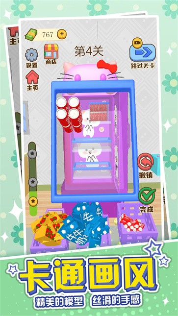 4、音效设计细致入微增强沉浸感,冰箱门开关的机械声,物品归位时的提示音都真实还原,配合轻快的背景音乐,营造舒适愉悦的游戏氛围。