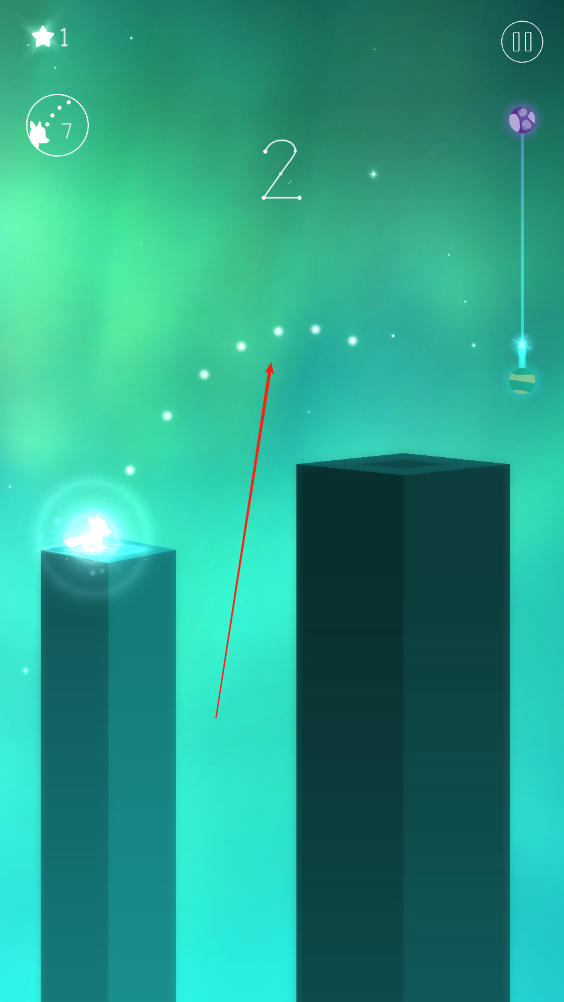 2、前期的时候长按屏幕可以看见大概的跳跃弧线,后期关卡弧线就会消失,难度会逐渐地变大。