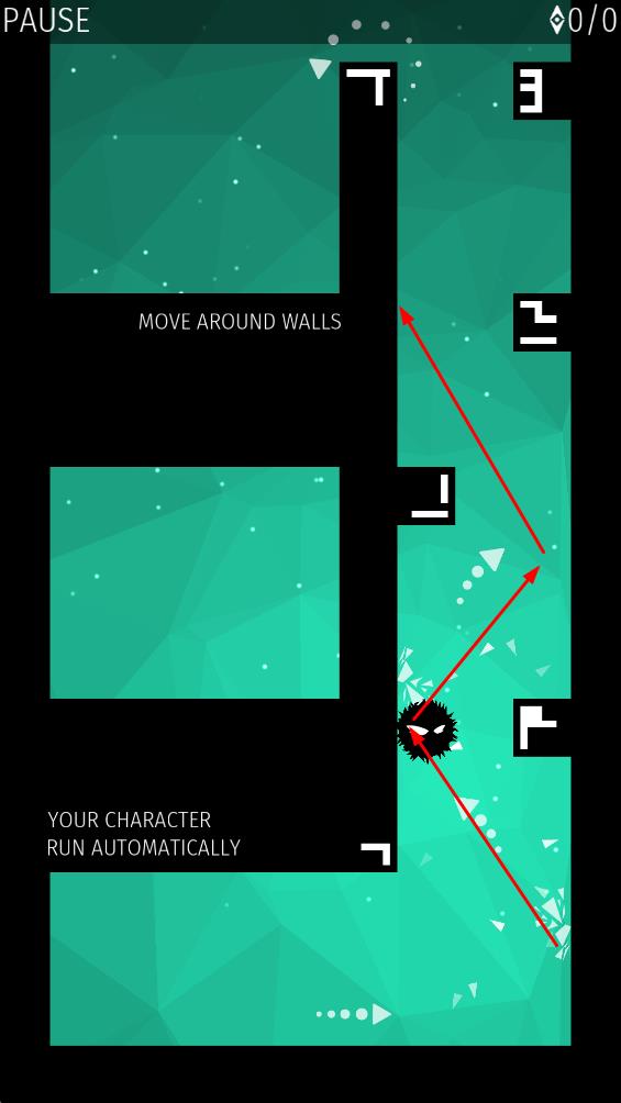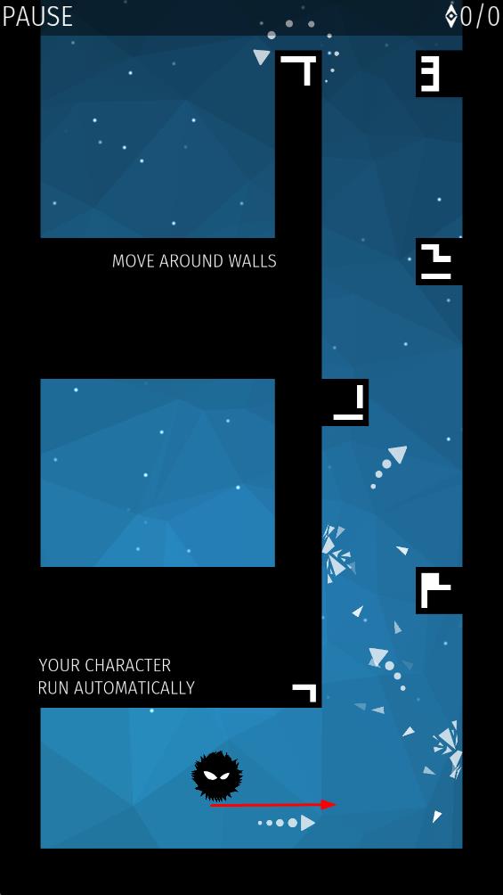 1、黑色毛球自动奔跑,玩家操控转向,绕开黑色墙壁。
