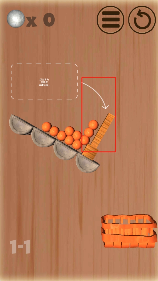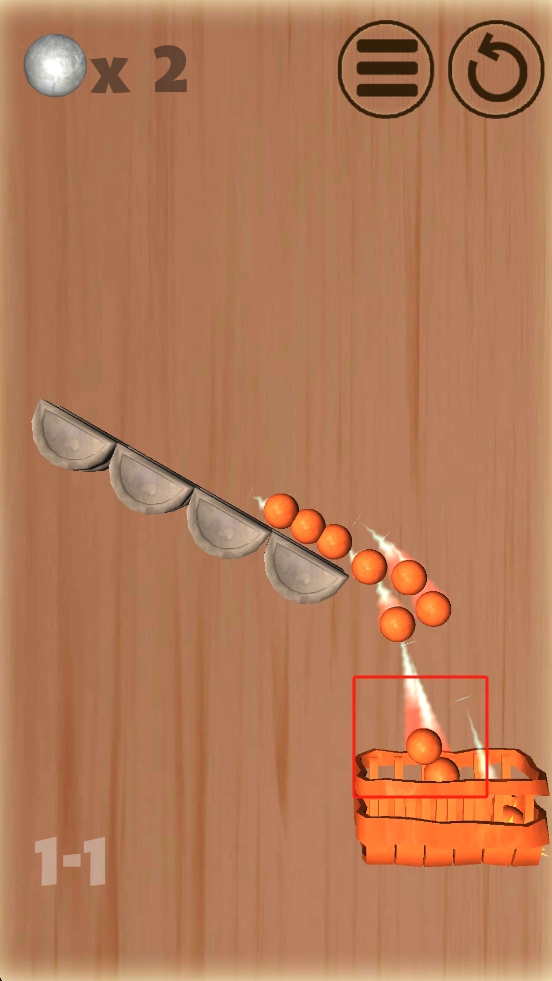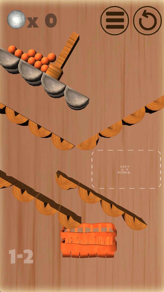 1、开局我们仔细观察弹珠滚动趋势,找准时机点击木板,使其精准旋转,借助木板改变橙色弹珠原本的滚动路径。