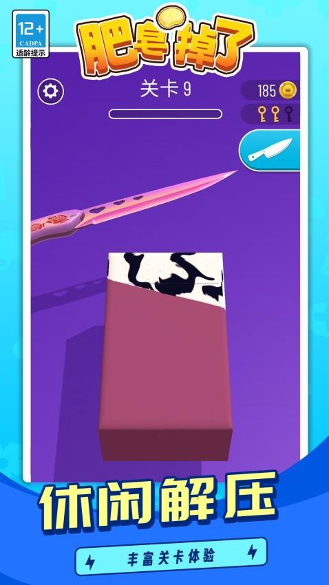 2、精致细腻的画面表现,采用明亮色彩与Q版造型设计。肥皂碎裂时的粒子效果和刀具反光都经过精心打磨,带来视觉享受。