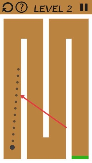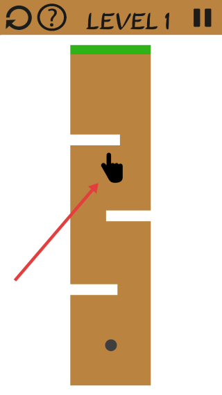 2、Level1中,观察黑色手掌标识方向,调整弹射角度,让小球反弹通过白色通道,抵达目标。