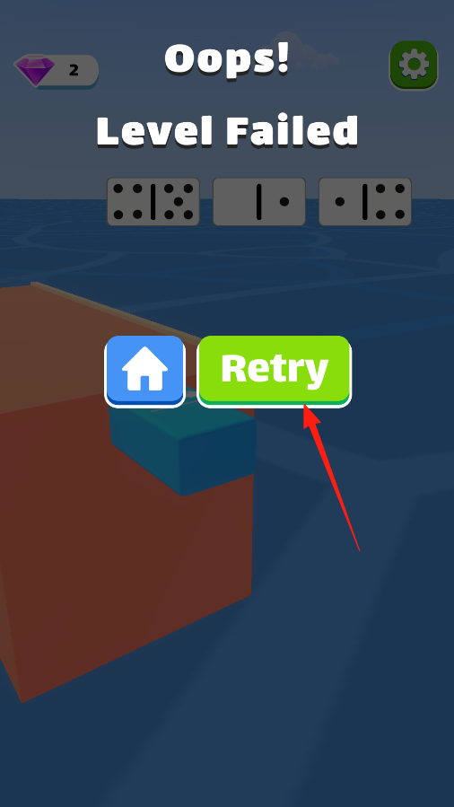 3、关卡失败后,屏幕显示Oops,Level Failed,这时点击Retry按钮,就能重新开始这一关卡,重新尝试时,要更好地操控角色,避免再次失败,争取顺利通过关卡。
