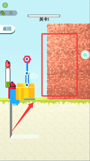 1、进入关卡后先观察墙体结构,操控机器靠近薄弱点或标记处,启动钻头或锤子开始破坏墙面。