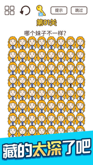 1、玩家在游戏中的主要任务是在一张图片内寻找出和其他人物不相同的地方,这种寻找差异的玩法考验了玩家的观察力和注意力。