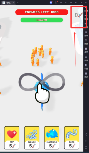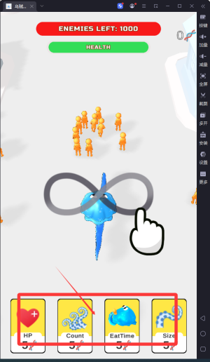 1、核心玩法是通过快速精准操作吞噬人类士兵,乌贼每击杀一个目标即可获得分数奖励,同时积累金币用于强化自身属性,在限时挑战中追求更高成就。