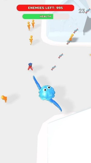 1、玩家可操控乌贼在巨大地图中自由穿梭,通过不断吞噬红色士兵实现体型增长从而提升防御能力,每次成功抵御进攻都能带来更强的生存保障。