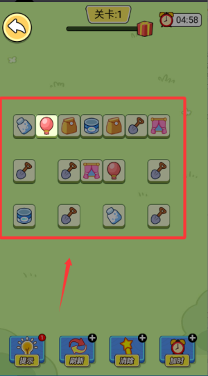 1、进入关卡后先观察方块布局,找出能连成三个或以上的相同方块,点击或滑动把它们快速消除掉。
