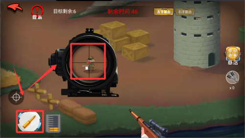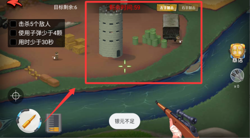 1、进入关卡后先观察地形,找到敌人碉堡和掩体位置,利用瞄准镜慢慢搜索可疑区域,别着急开枪。