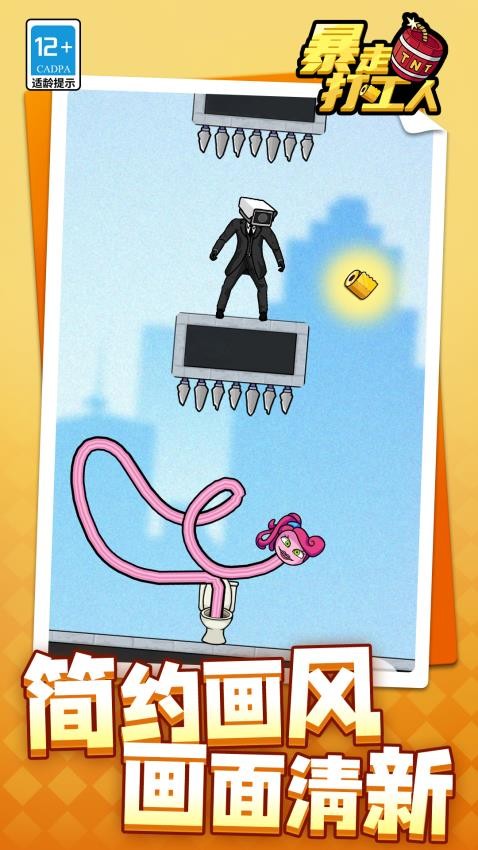 3、无尽挑战模式考验极限操作,在随机生成的赛道上持续前进。收集金币可延长生存时间,全球排行榜记录最强打工人的战绩。