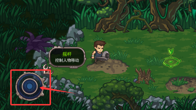 2、通过左侧方向键控制猎人,在雨林等场景中自由行动探索。