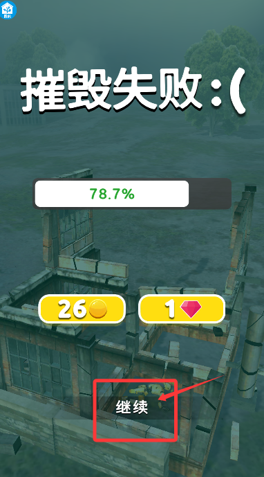4、若破坏程度不足,选择重新挑战按钮即可再次尝试爆破。