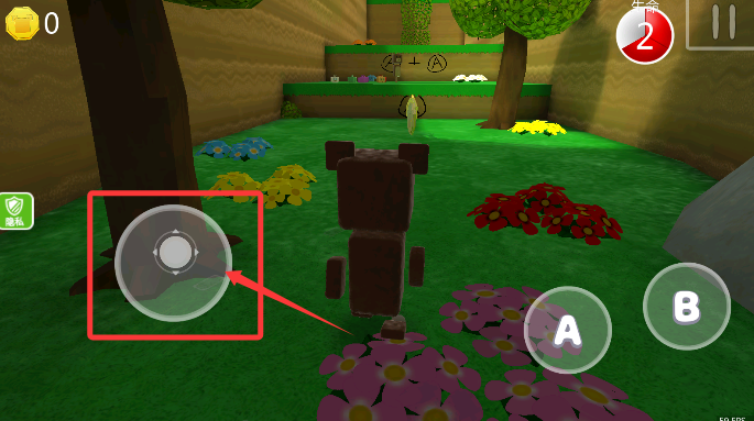 2、通过使用左侧方向键控制角色,在森林场景中自由移动探索。