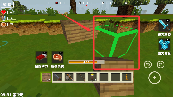 3、收集资源后可通过建造功能,用木材等材料搭建实用建筑结构。