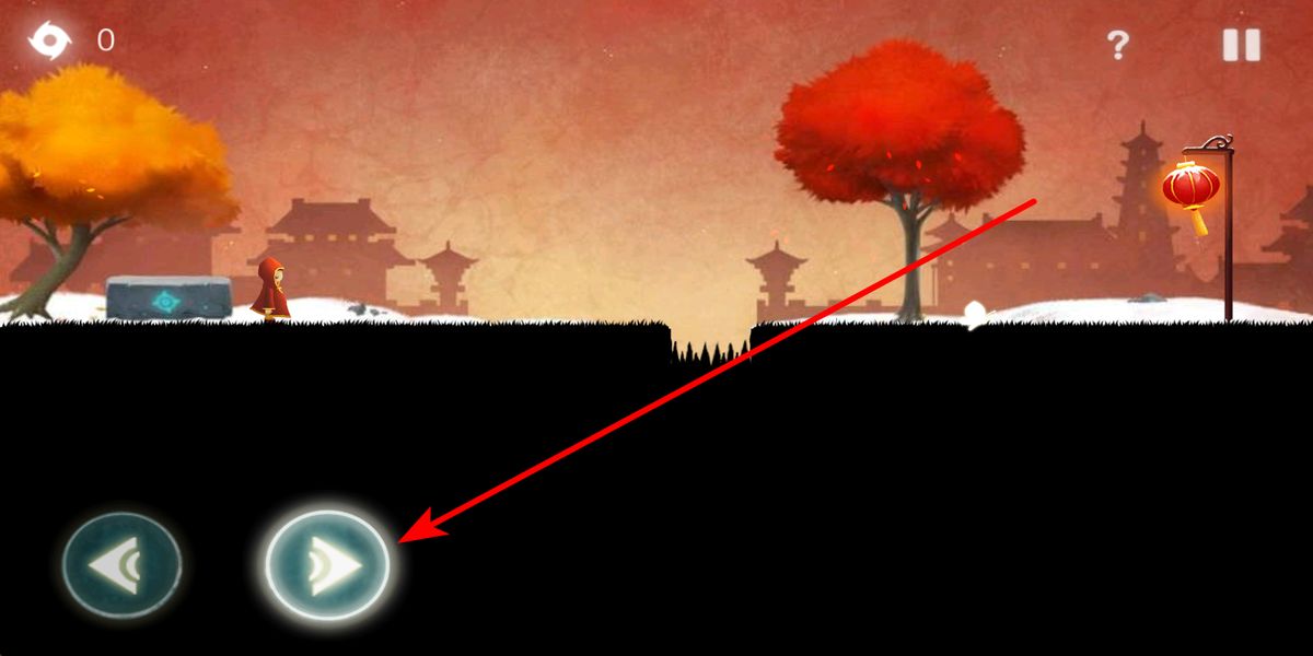 1、初始场景点击底部前进按钮控制角色右移,遇沟壑先移至边缘观察,虽前期无法直接跨越,但持续点击可触发新功能按钮解锁,为后续跨越做准备开启冒险。