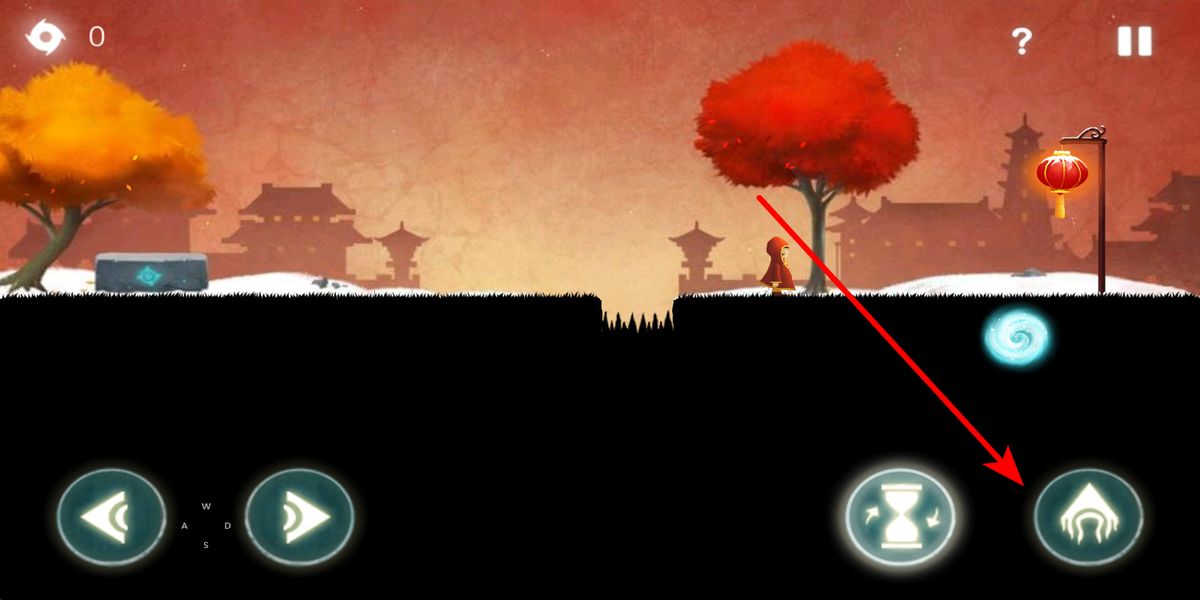 2、前行遇地刺障碍时点击跳跃按钮通过,或者将其放置沟壑处搭建临时路径,此按钮用于与场景道具互动,结合前进操作可助角色通过当前地形,继续深入冒险。