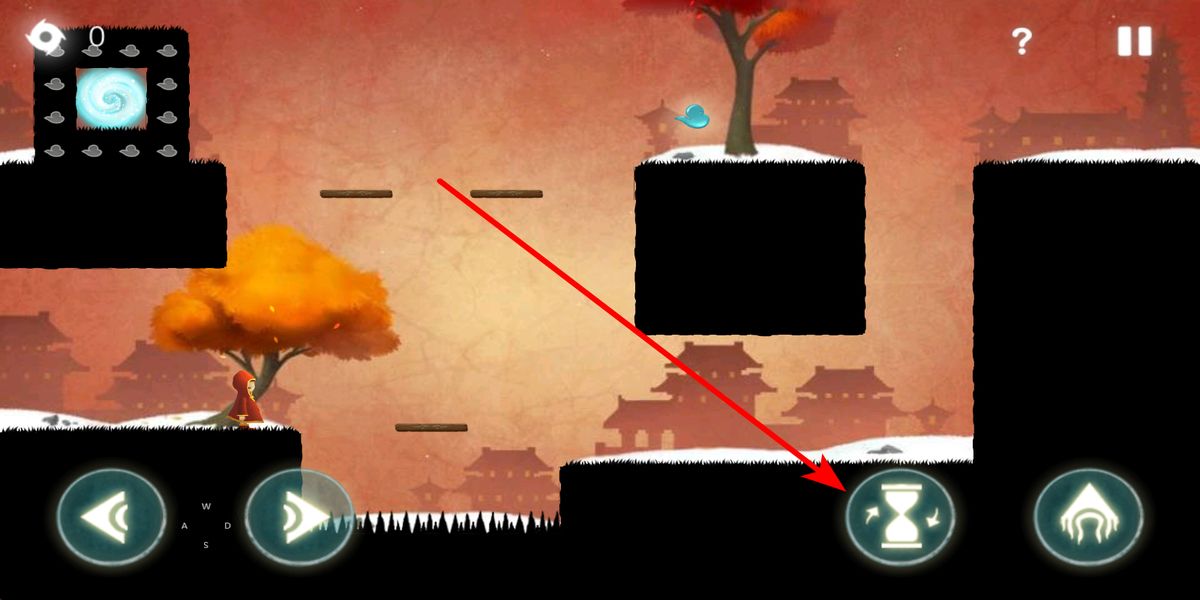 3、面对尖刺与悬浮平台点击沙漏按钮操控时间,遇尖刺可提前开启功能减慢其速度或回溯至安全状态,规划路线借助平台跳跃,规避危险通过复杂区域解锁内容。