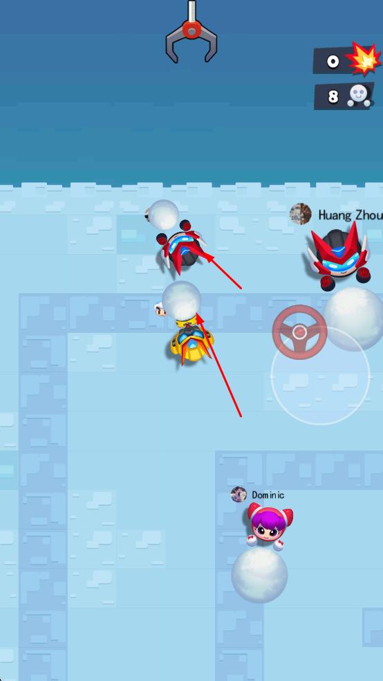 2、瞄准其他玩家,推动雪球进行撞击,削弱对手状态,推进对战节奏。