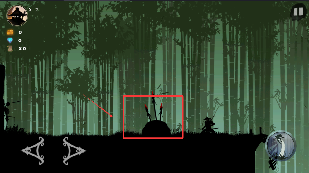 2、按下跳跃按键,人物立即腾空跃起跨越低矮地形。
