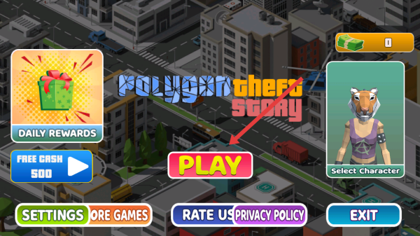 1、在Polygon-Theft-Story主界面,点击粉色PLAY按钮,进入角色选择界面,开启游戏角色的挑选流程。