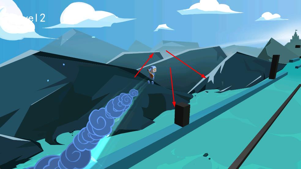 2、跨越场景中的蓝色长条障碍,持续向关卡目标推进。