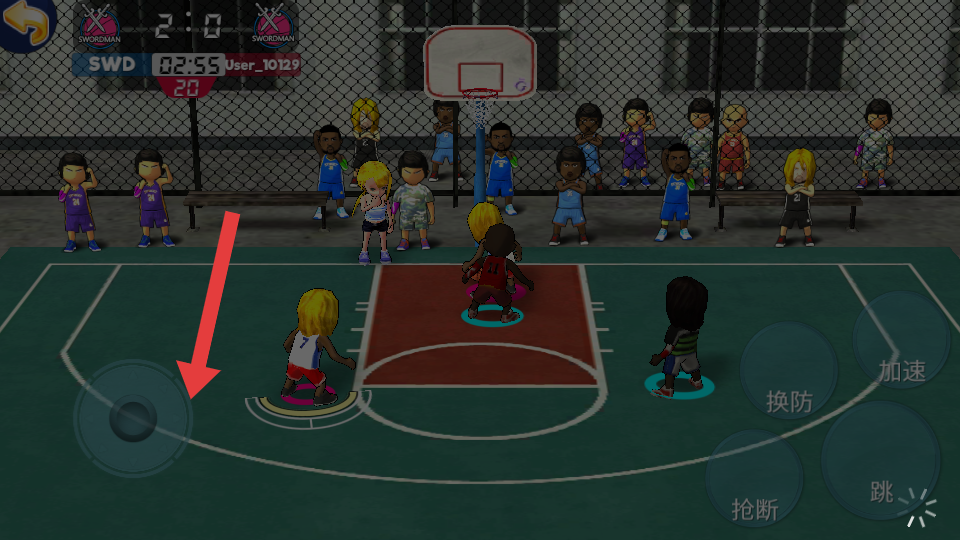 1、投篮掌握得分关键:触摸屏幕点击投篮,人物会读条,颜色到中线变绿为最佳,在各职业投射范围内可百分百进球,如后卫的三分、前锋的中投等。