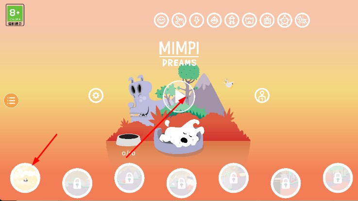 1、进入游戏,选解锁关卡,点击按钮开启冒险,操控小狗小明,依据指引开始旅程。