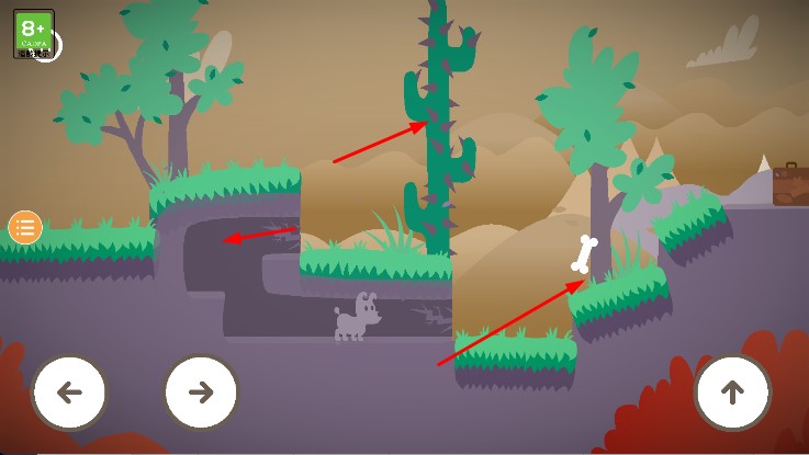2、在场景中,用方向按键让小明移动,跨越障碍,探索新区域,收集骨头、解锁隐藏内容。