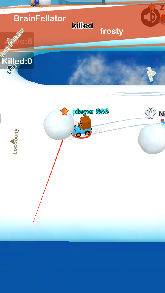 2、当自己的车头对着其他的玩家的时候,能将对方顶飞,也同时要注意躲避对方滚过来的雪球攻击。