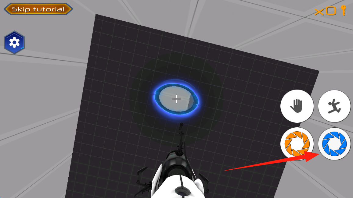 2、对准蓝色光圈,点击右侧蓝色技能按钮,发射装置穿越光圈,完成空间传送,点击发送传送门。