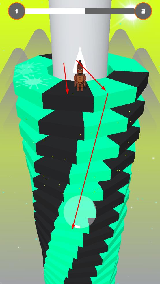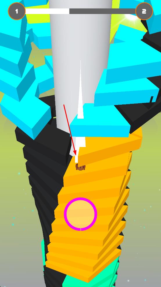 1、进入游戏,角色从螺旋塔上方下落,开启闯关。