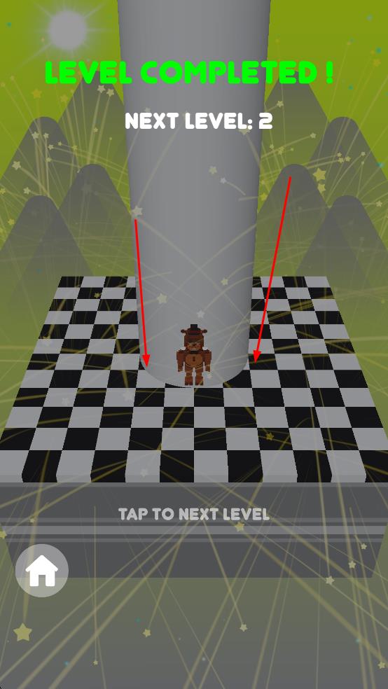 1、触摸控制精准掉落:玩家触摸并按住屏幕,控制弗莱迪从高处掉落,需让其精准落在彩色区域,避开黑色区块以免失败,通过调整按压时长控制掉落位置。