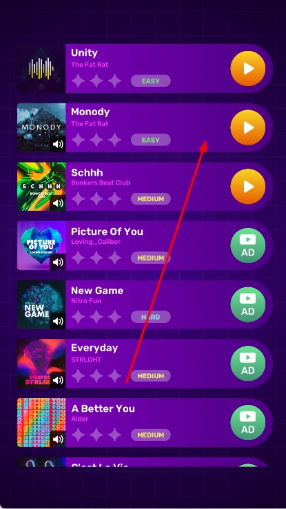 1、进入游戏,选音乐,如Monody,点击播放开始挑战。