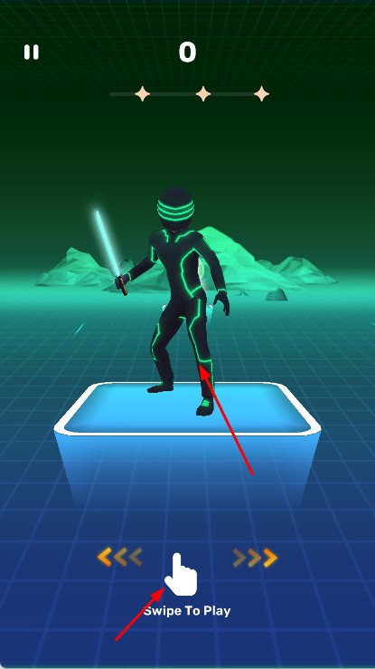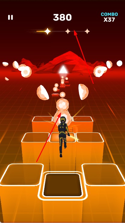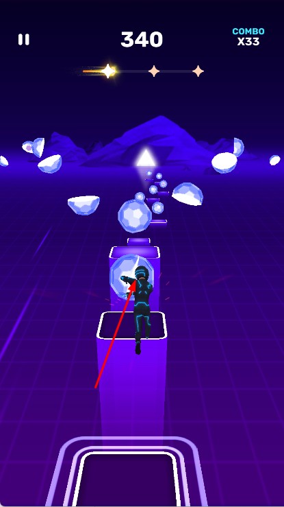 2、左右滑动屏幕操控角色,随音乐节奏,用激光剑切割前方方块,保持连击。