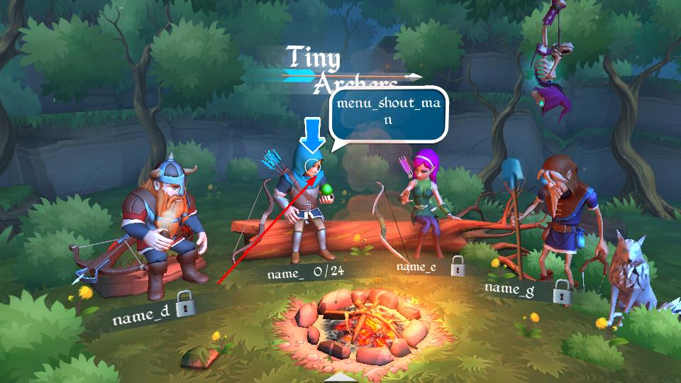 1、在营地界面点击可解锁的弓箭手角色如持苹果的角色,查看角色进度如name_o/24,选定参战角色。