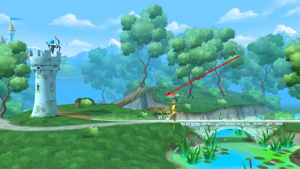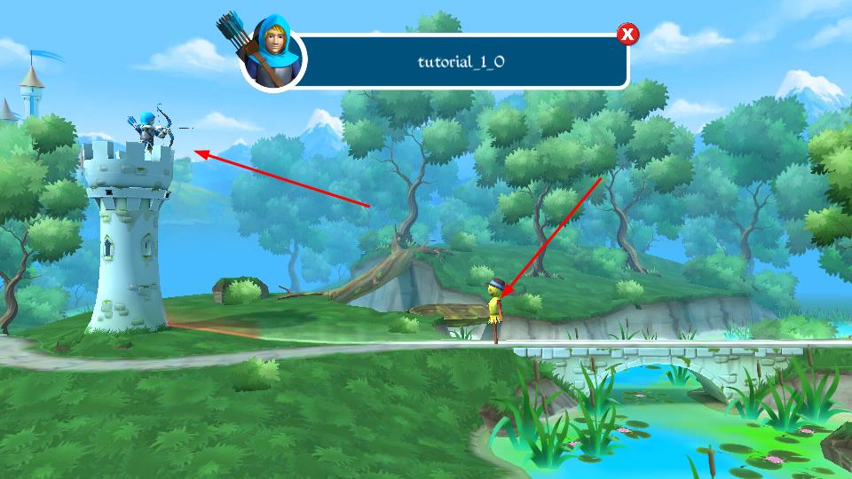 2、进入关卡后,操控塔楼顶端的弓箭手,瞄准地面目标如稻草人,调整射击角度发射箭矢攻击。
