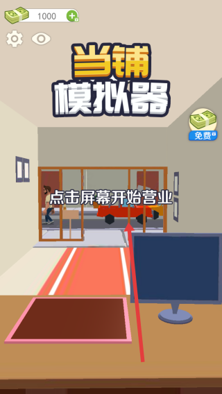 1、进入到游戏中后,可在当铺模拟器界面点击屏幕,开启当铺营业,正式迎接顾客开展交易。