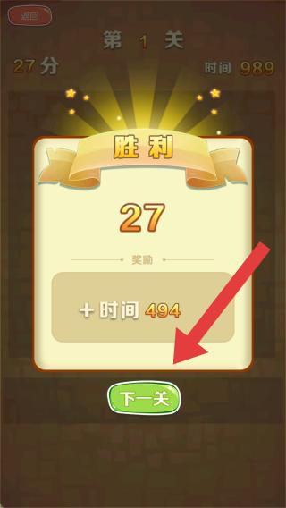 3、优先选择与槽位中已存在的方块相匹配的物品进行点击,秒数每关是通用的,获胜即可增加秒数。