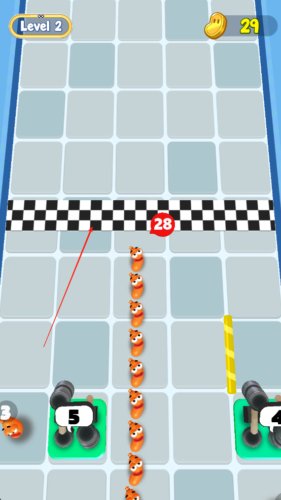 3、带领香肠队伍冲向终点线,抵达时根据剩余香肠数量获奖励,关卡失败可以继续重新挑战。