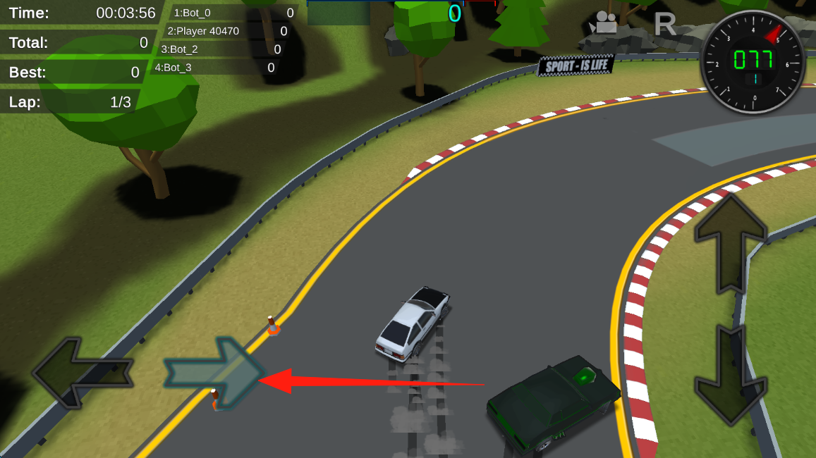 3、在赛道行驶时,点击右侧方向箭头控制转向,漂移过弯,超越对手,点击移动车辆。