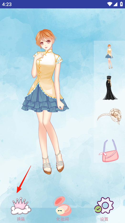 2、你可以点击换装按钮,点击后右侧会出现不同的服装配饰,你可以挑选喜欢的给人物换上,打造出不同的造型。