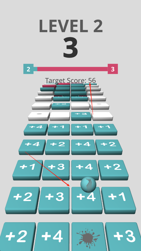 3、每完成一个关卡,下一个关卡的目标数字就会更高,到达终点的时候如果没有到达目标数字只能重新开始挑战。
