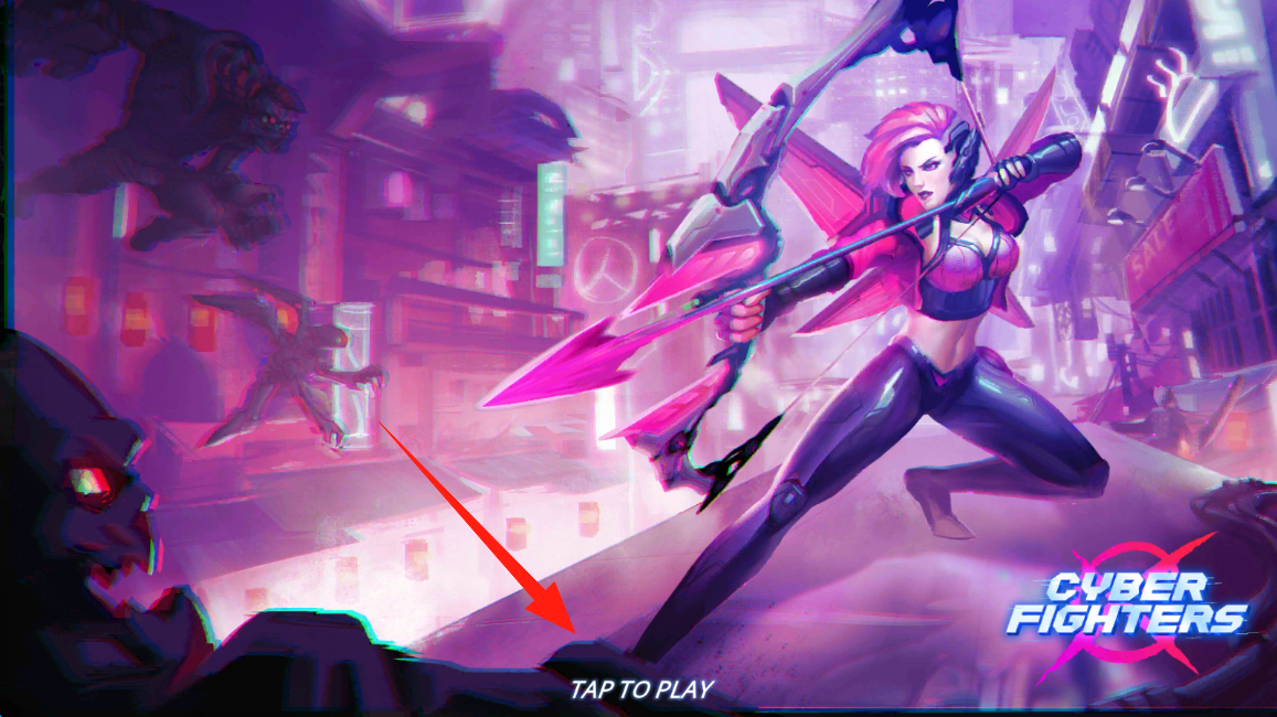 1、在游戏启动界面,点击TAP-TO-PLAY,进入Cyber-Fighters的赛博战斗世界,点击开始游戏。