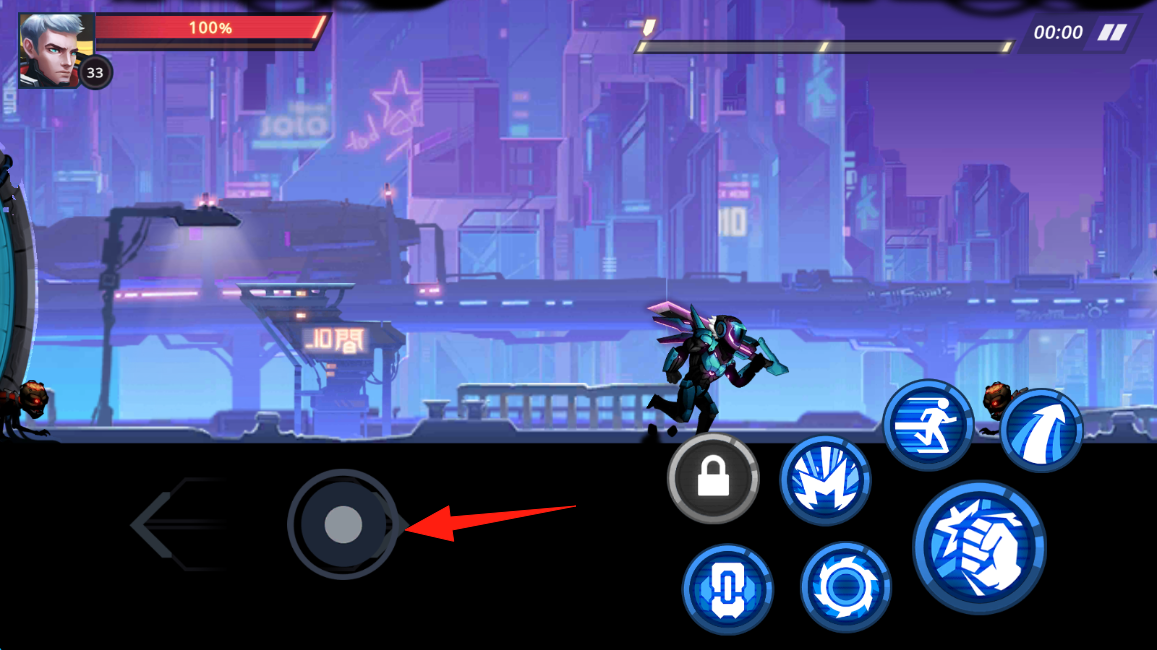 2、战斗时,通过左侧摇杆控制角色移动,躲避敌人攻击并调整战斗位置,拨动轮盘移动人物。