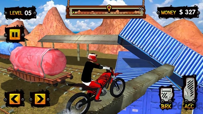 1、通过虚拟按键控制加速刹车,保持平衡穿越起伏地形。